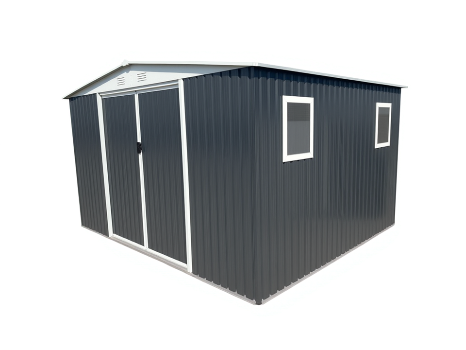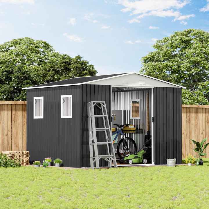 Capanno da Giardino per Esterni 12FTx10FT con Tetto a Punta Grigio e 4 Finestre