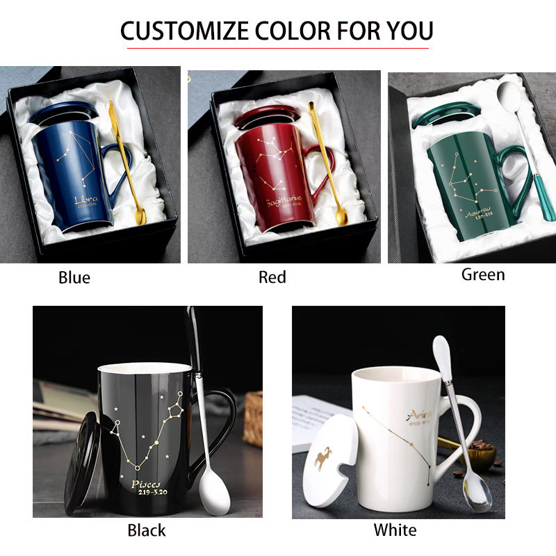 Fornitore Cinese all'Ingrosso Tazza Mug da Caffè in Ceramica con Cucchiaino Raffinata e Moderna con Logo Personalizzato Costellazione Idea Regalo