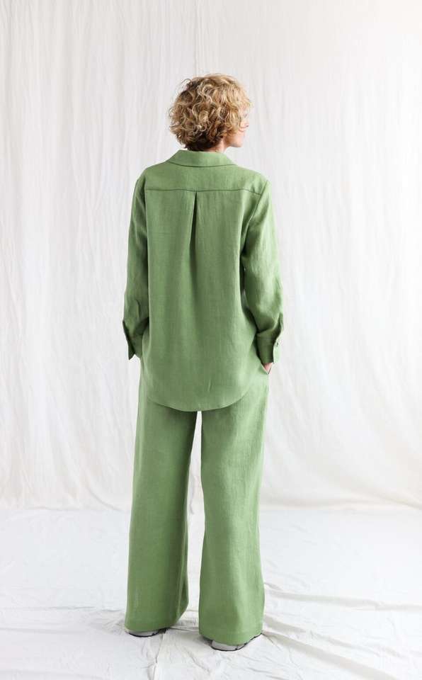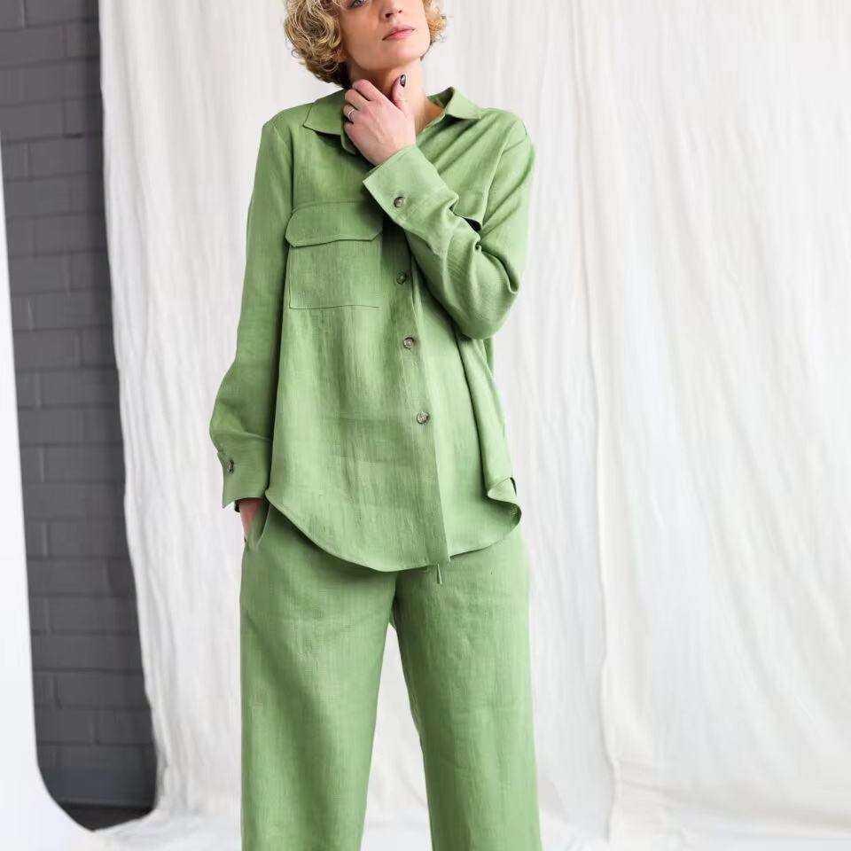 Camicia e pantaloni di lino verde Oversize da donna Casual Casual Casual donna donna