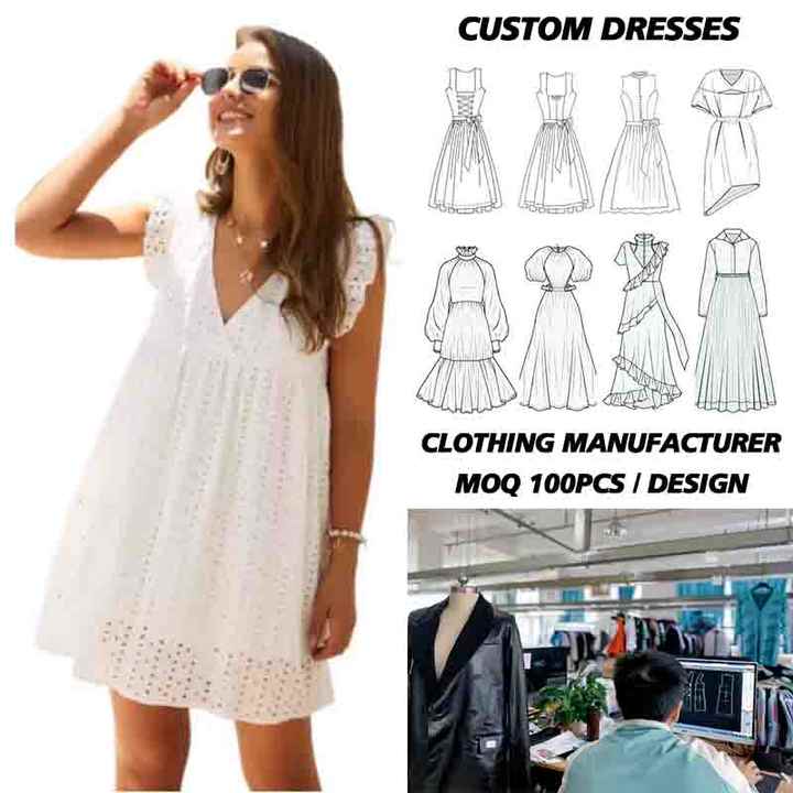 China Fabbrica OEM Nuovo Disegno del Bicchierino di Estate Bianco Vestito Volant di Pizzo