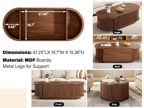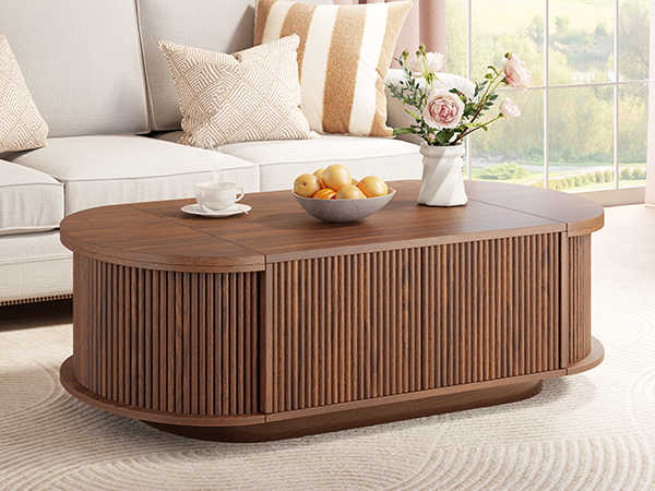 Tavolino da Salotto Ovale in Legno con Piano Sollevabile e Ampio Vano Contenitore Nascosto - Prodotto Personalizzato OEM/ODM da Fabbrica Cinese