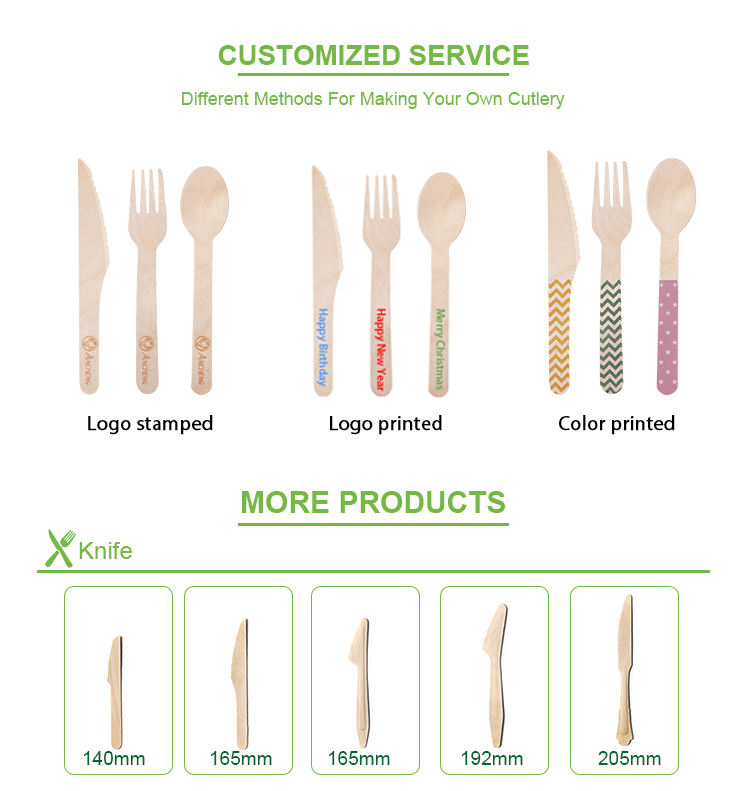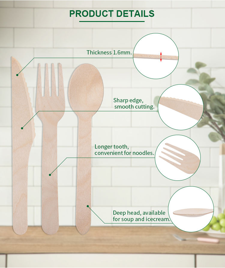 Cina Factory Outlet 300 pezzi di legno posate monouso legno di betulla posate cucchiaio coltello e forchetta