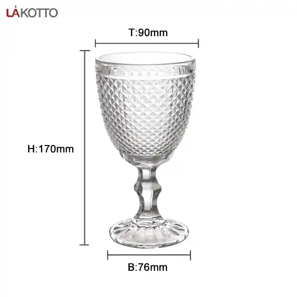 Cina vetreria all'ingrosso a buon mercato rosso calice bicchiere di vino trasparente diamante Vintage goffrato acqua e succo di vetro tazza