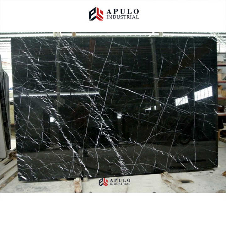 Piastrelle per Pavimenti in Marmo Nero Lucido Cinese Nero Marquina/Margiuna, Grandi Lastre di Marmo Belga dello Zimbabwe con Venature Bianche