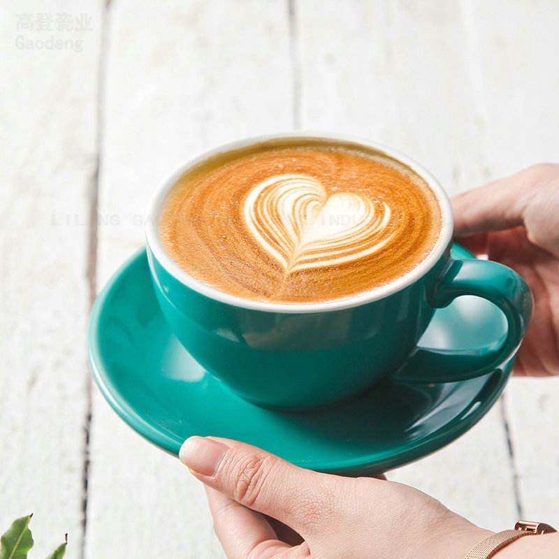 Set di Tazze e Piattini in Ceramica per Cappuccino da 220cc, Tazze per Bubble Tea in Ceramica e Porcellana, Prodotte in Cina