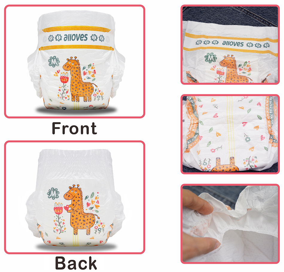 Nucleo assorbente SAP giapponese: L'uso di SAP giapponese nel nucleo assorbente garantisce un'alta assorbenza, mantenendo il bambino asciutto e comodo per periodi più lunghi.