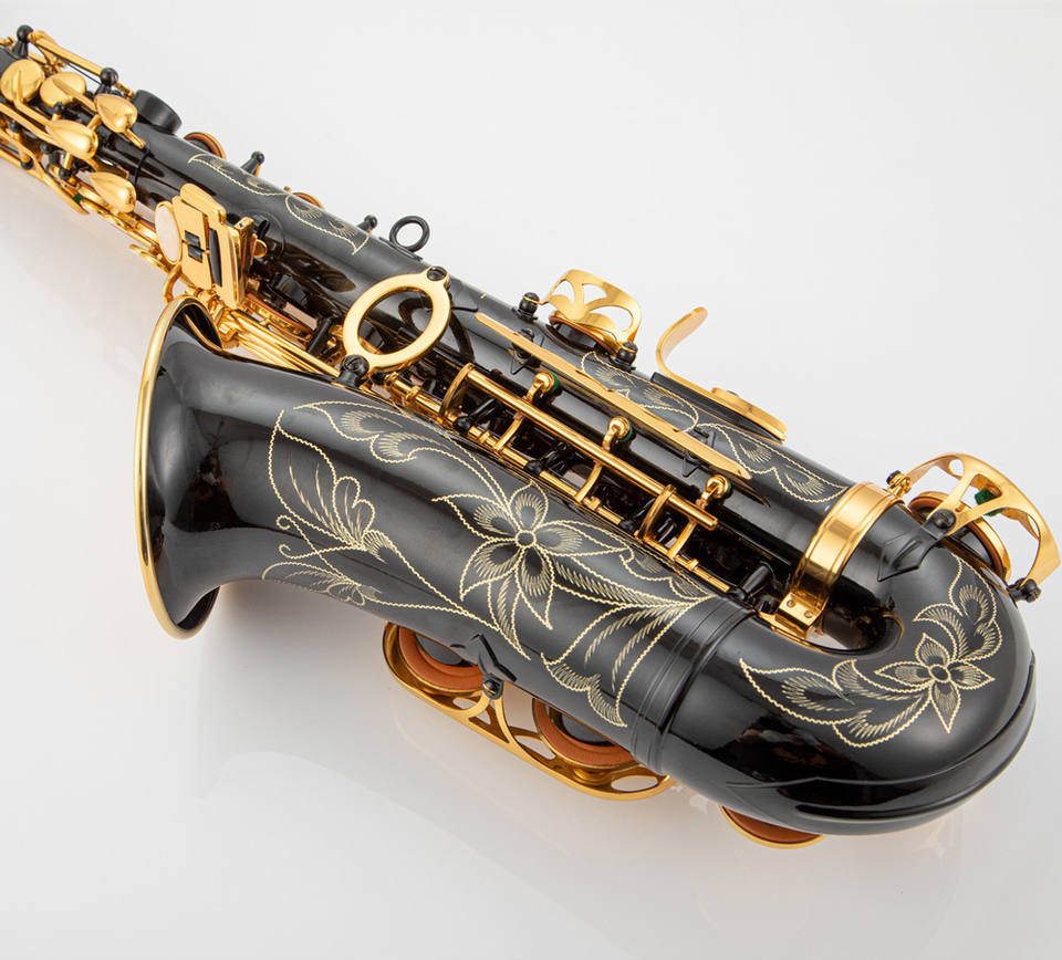 China OEM Handmade High Grade Professional Black Printed Eb Alto Saxophone for Sale