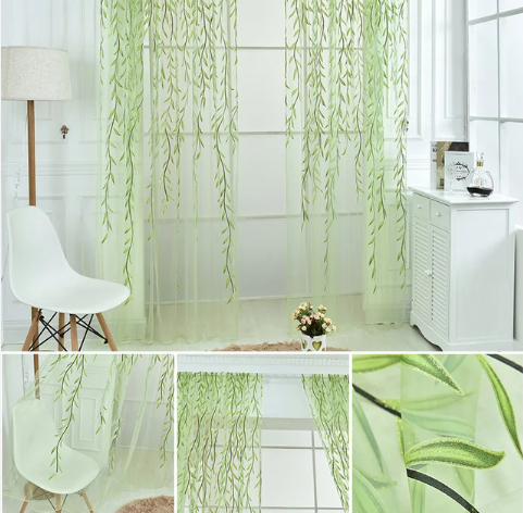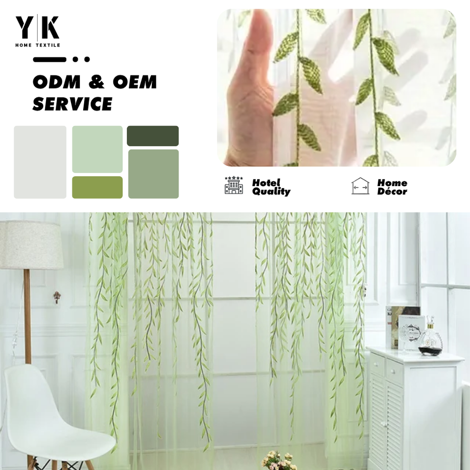 China Supplier Ready Made Living Room Green Leaves Printed Curtain