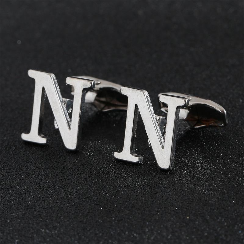 China Supplier Wholesale Cufflinks Men Letter Silver 26 English Letters Glossy Men's Cufflinks Iron Cufflink with the Letter m