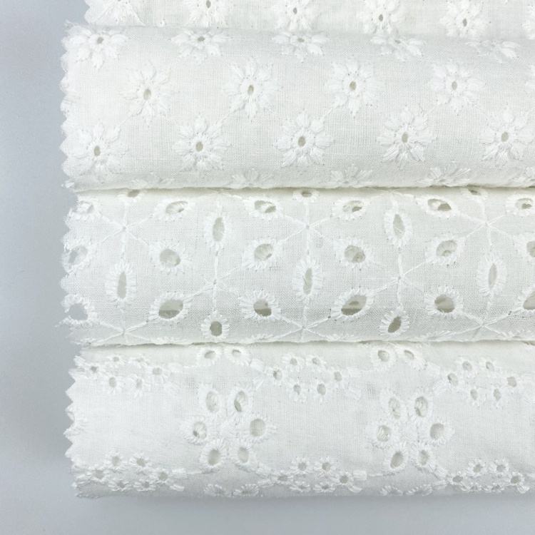 Cina tessuto bianco ricamato svizzero voile occhiello 100% cotone ricamo tessuto per le donne vestito