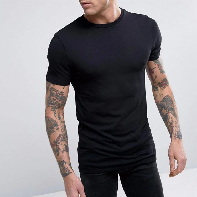 China Wholesale 160 180 200 GSM Men Slim Fitted Longline Blank T Shirt in Black