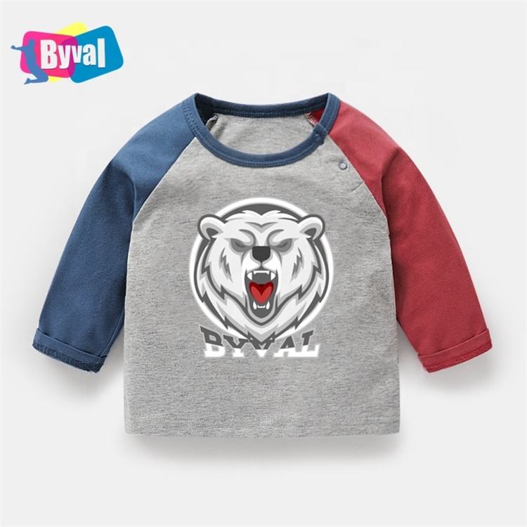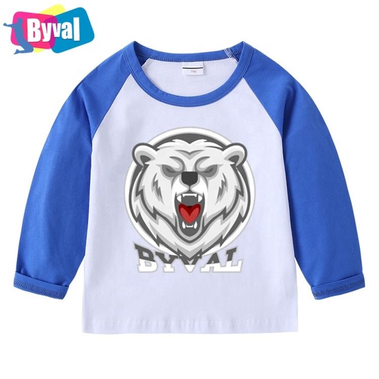 China Wholesale Custom logo Kids T-shirt Long Sleeves Baby Tshirts 100% Cotton White Contrast Color Raglan Sleeve Kid T-shirt