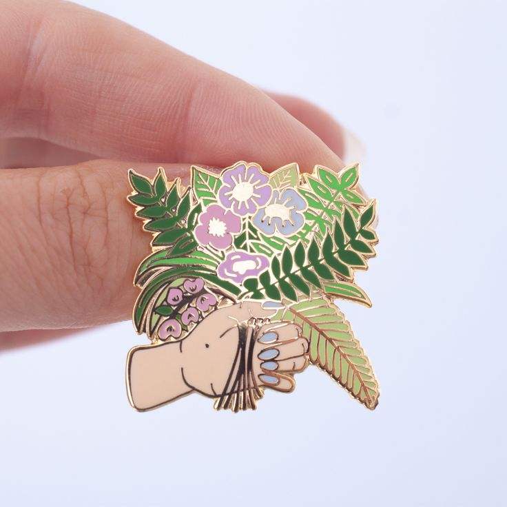China Wholesale Designer Hat Collar Clothes Gold Metal Hard Enamel Bouquet a Bunch of Flowers with Hand Lapel Pin Custom Bulk