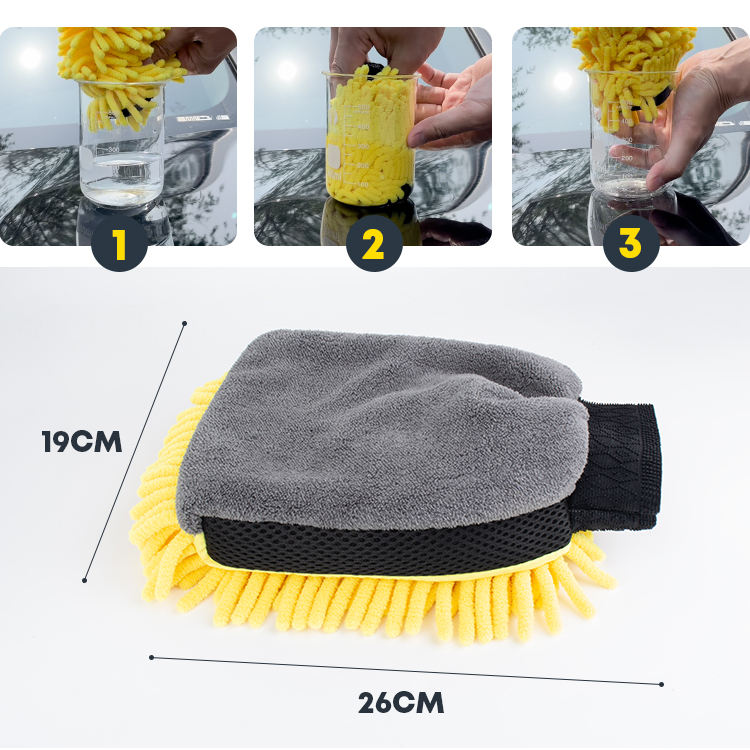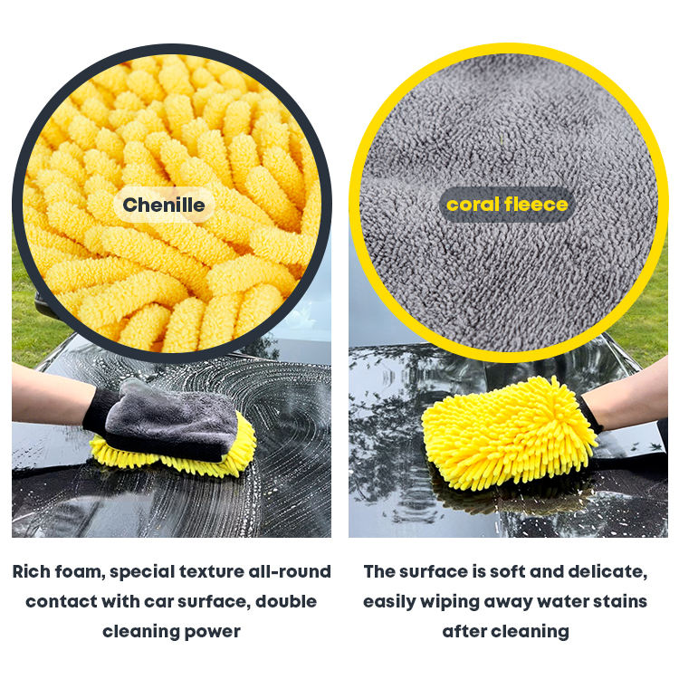 China Wholesale Premium Double Sided Coral Fleece Chenille Noodle Glove Microfiber Car Wash Mitt for Auto Detailing Car Cleaning