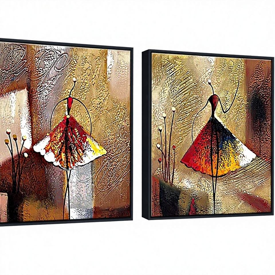 China Wieco Art Framed Ballet Dancers 100% Hand Painted Paintings Abstract Canvas Wall Art for Home Decor Black Frame