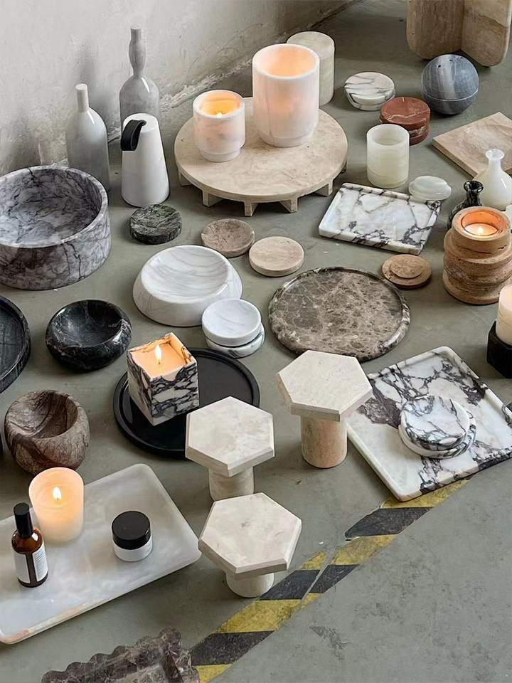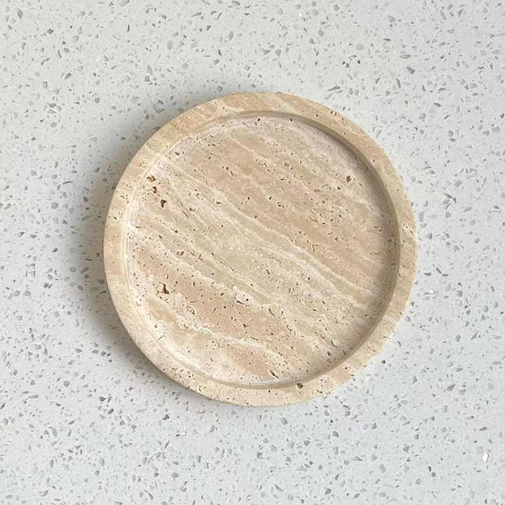 Vassoio Rotondo in Marmo Beige Cinese Economico, Marmo Nero Marquina