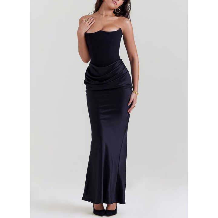 Chinese Clothing Manufacturers Sexy Clothes for Women Evening Gown Bodycon Strapless Dress Elegant Long Party Black Prom Dress