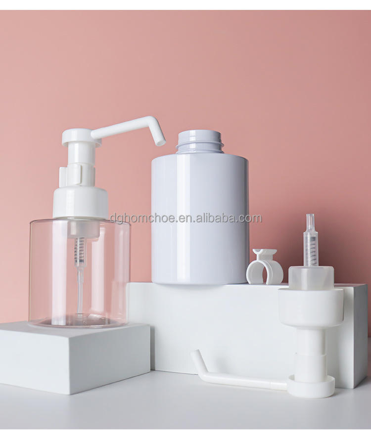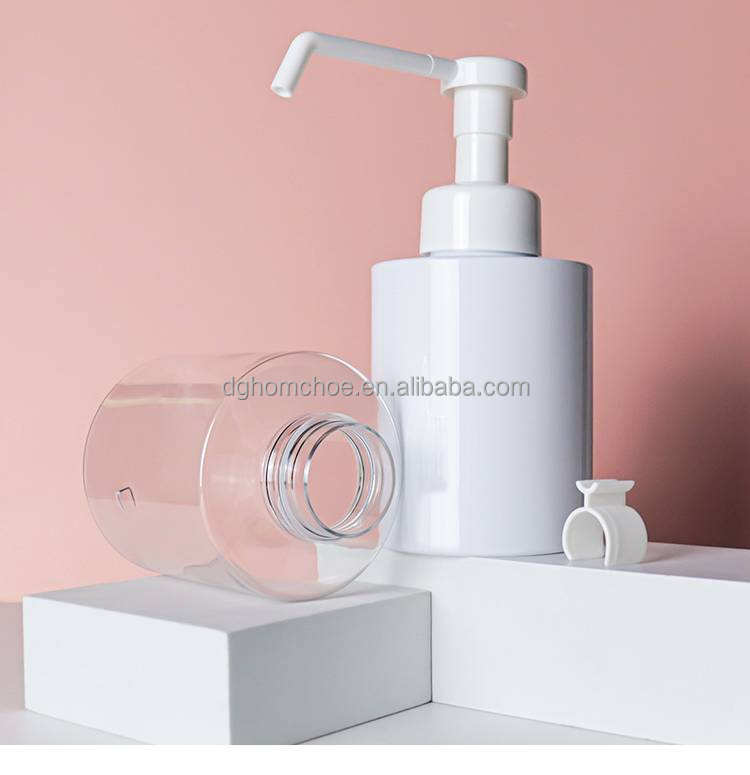 Flacone in Plastica PET Bianco Rotondo Vuoto da 300ml 500ml 800ml con Pompa a Beccuccio Lungo, Produzione Diretta Cinese
