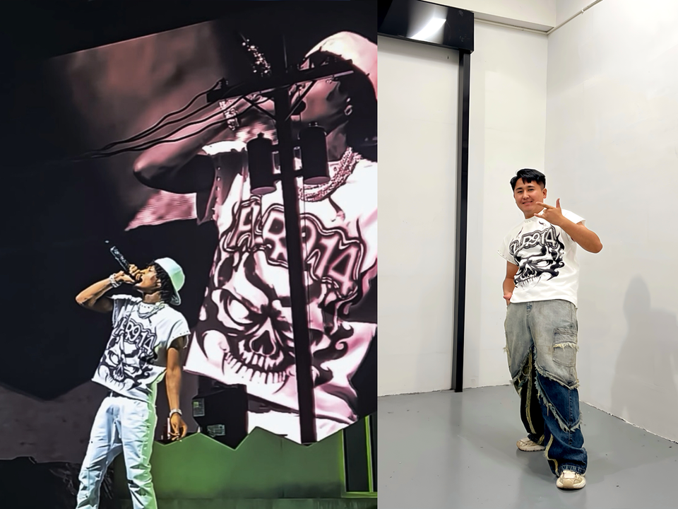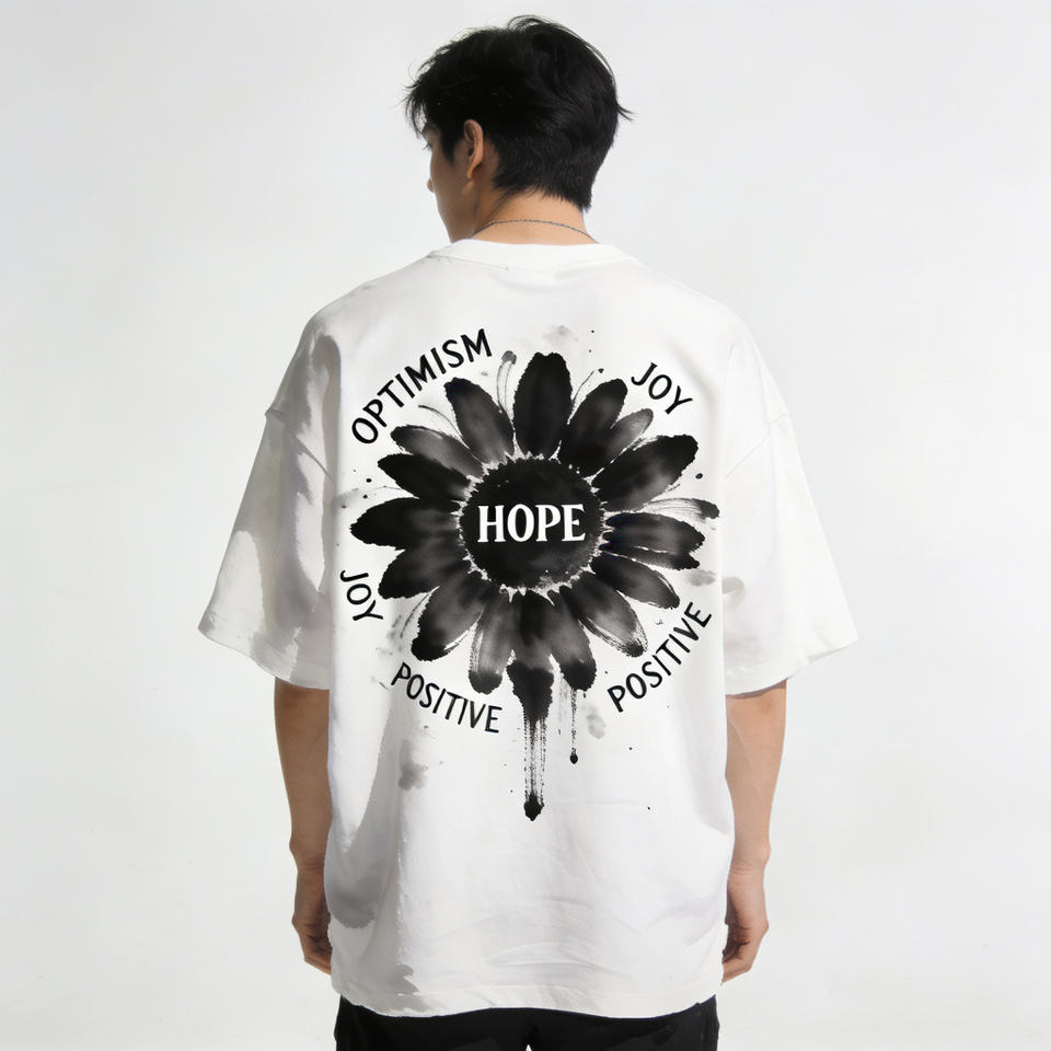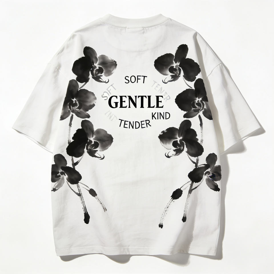 Chinese Ink Art T-Shirt - Black Floral Painting Design with PASSION Typography - Oriental Fashion Apparel