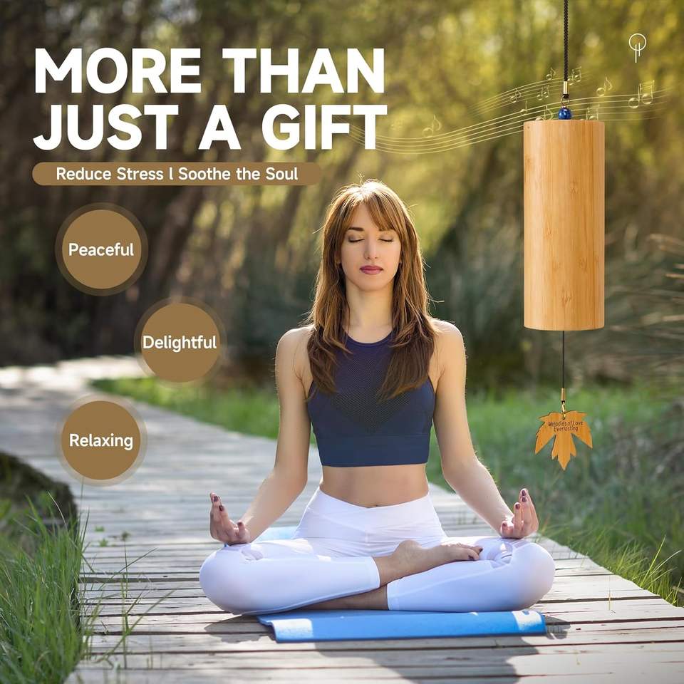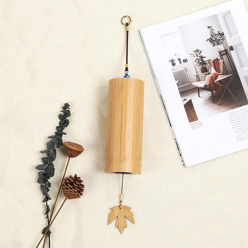 Chinese Outdoor Garden Bamboo Wind Chimes with Chakra Crystal Small Wooden Handcrafted Chimes with Calming Deep Tones