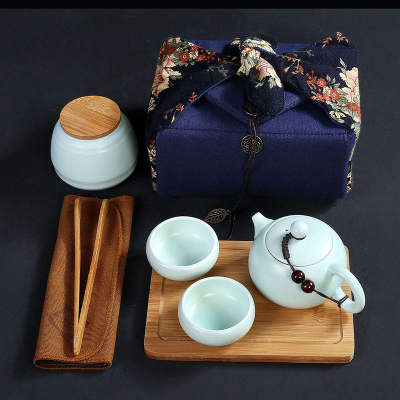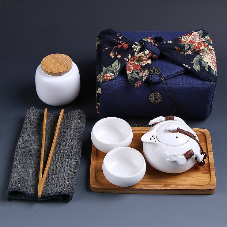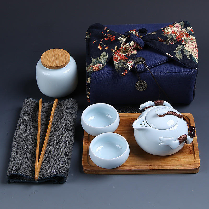 Cinese Portatile Da Viaggio set da Tè In Ceramica Kung Fu Teiera Tra Cui 1 Teiera 2 Tazze Da Tè 1 sacchetto 1 Vassoio 1 tè Scatola Metallica