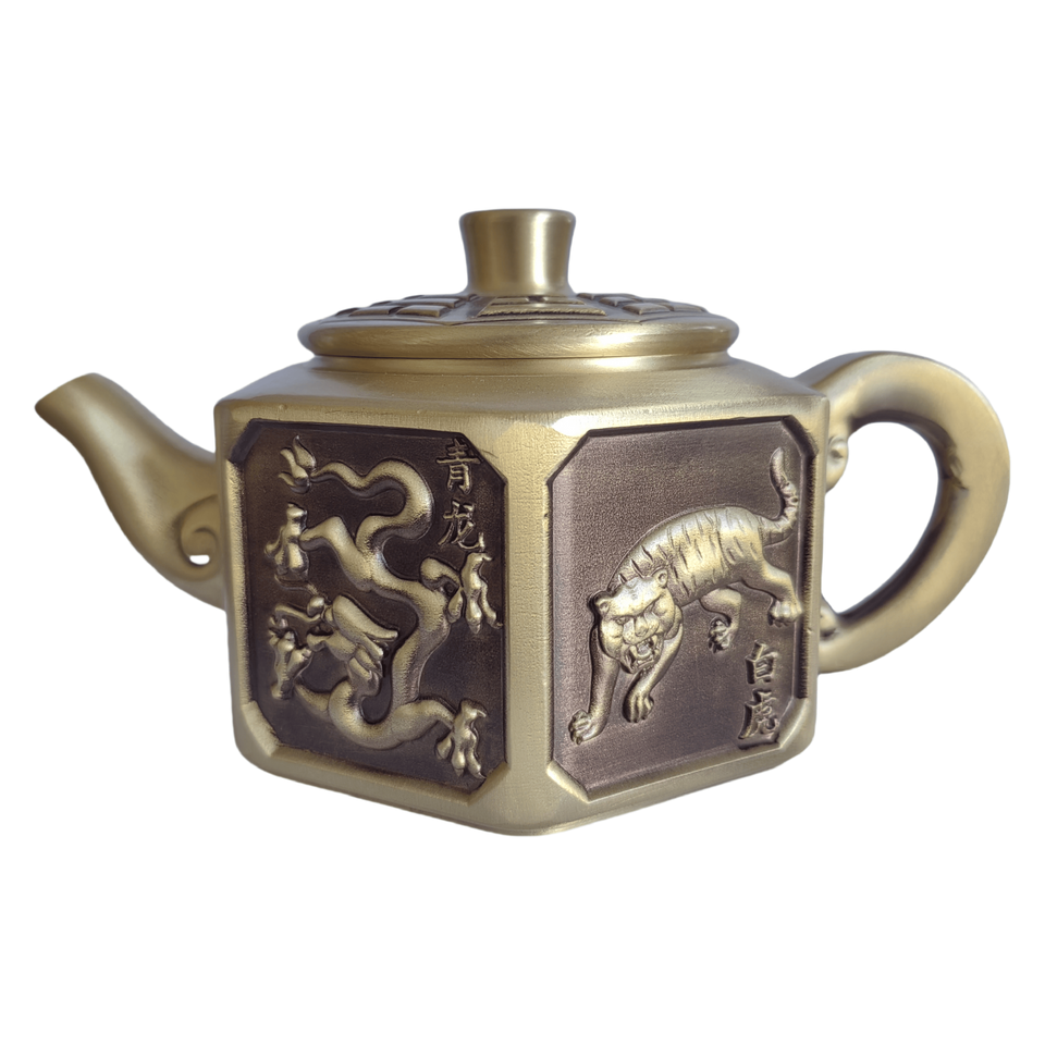 Teiere in Ottone Stile Cinese con Design delle Quattro Bestie Divine, Artigianato Metallico Classico Personalizzato per Decorazioni Casa e Ufficio