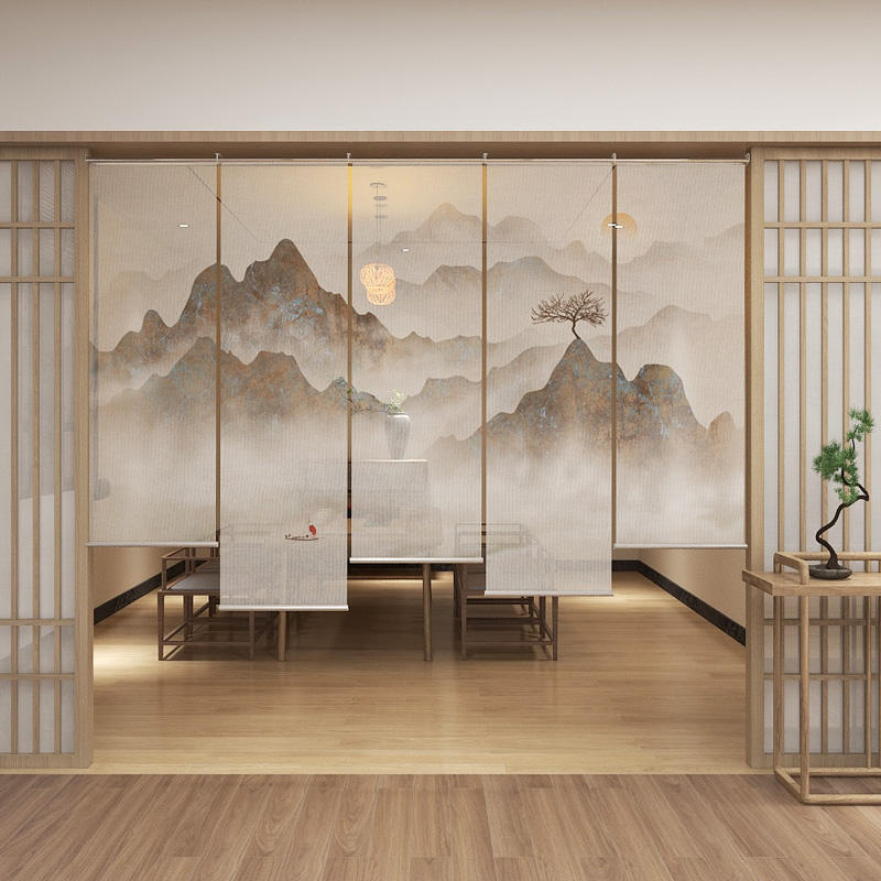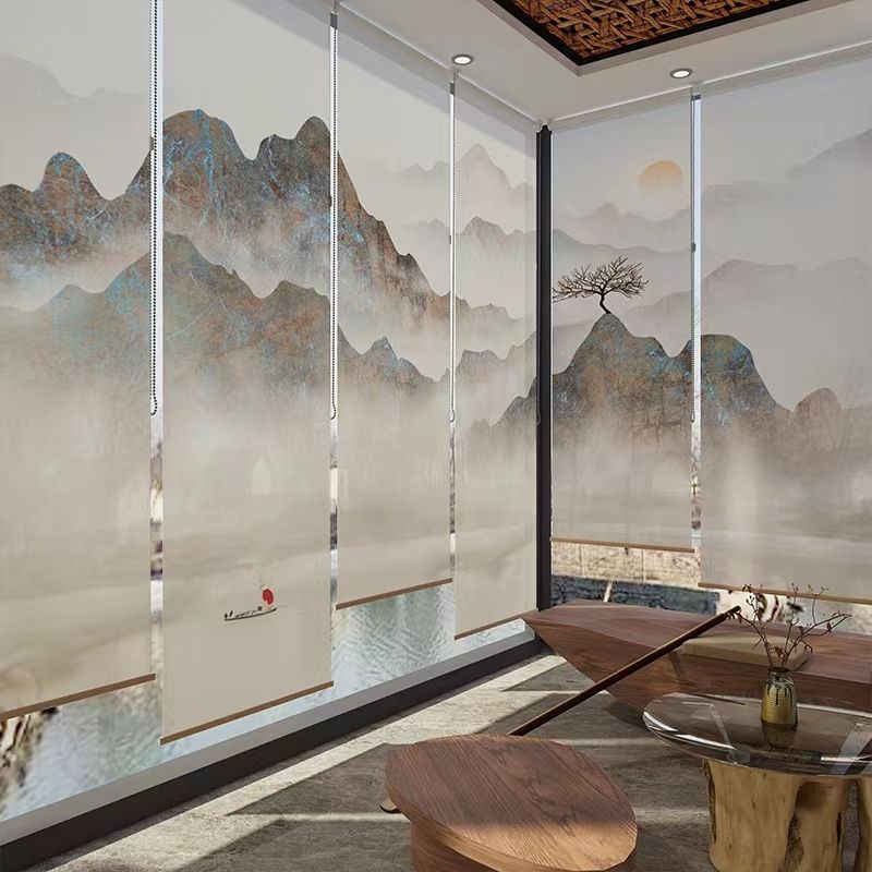Tende a Rullo Motorizzate con Motivo Paesaggistico in Stile Cinese, Vendita Diretta di Tapparelle e Tende Automatiche