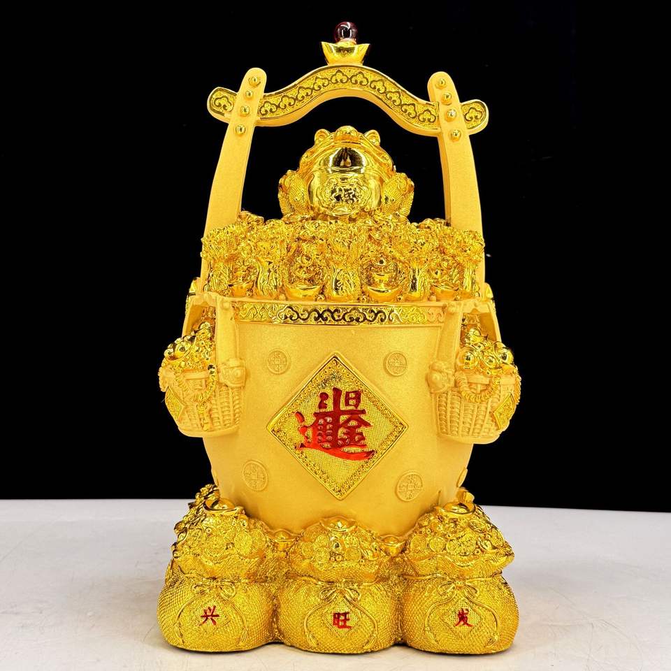 Ciotola del Tesoro in Stile Cinese, Barile Dorato, Salvadanaio in Stile Cinese, Decorazione Portafortuna, Ornamenti per Vetrinetta Vini in Resina