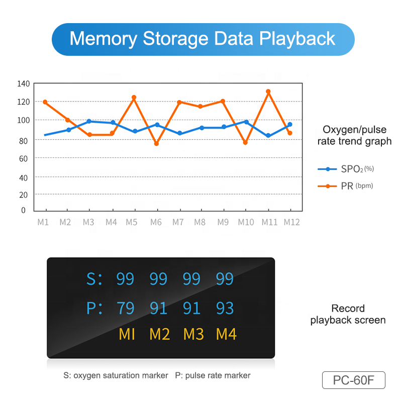 Stoccaggio:Fino a 12 gruppi di archiviazione dati SpO2