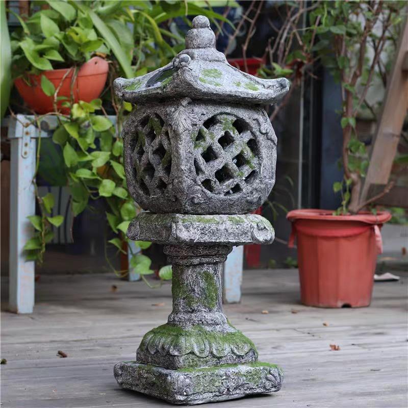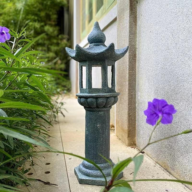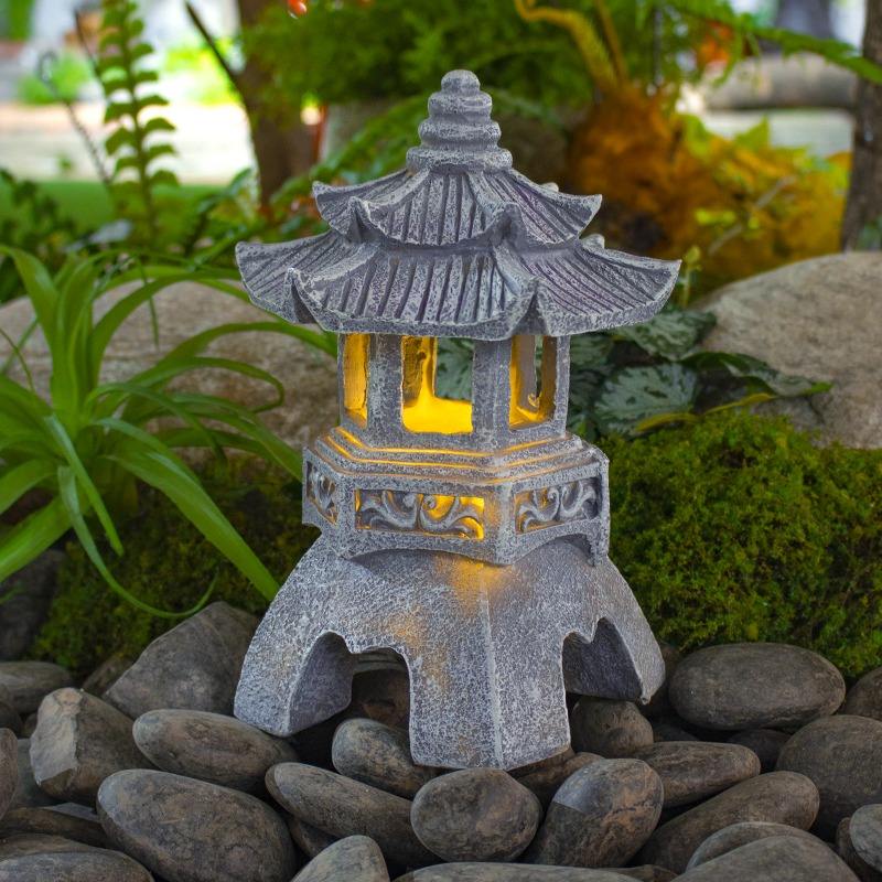 Chinese Zen Stone Pagoda Solar Lights Outdoor Garden Ornaments for Courtyard Balcony Palace Lantern Decor for Homestay Japanese