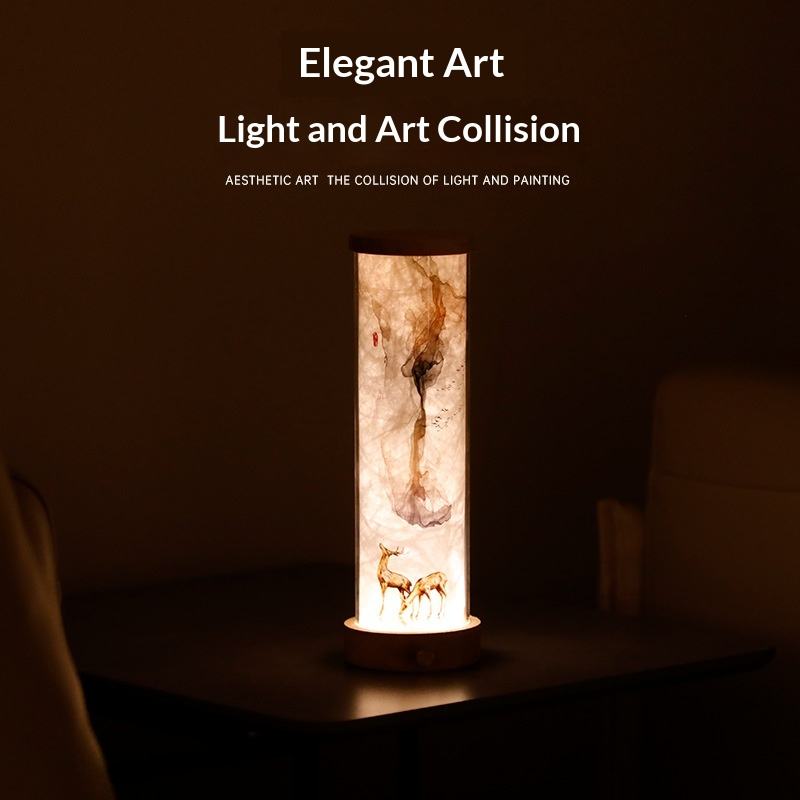 Lampada da Notte Creativa in Stile Cinese, Ornamento Decorativo in Legno Massiccio per Camera da Letto e Soggiorno, Lampada Atmosferica da Comodino