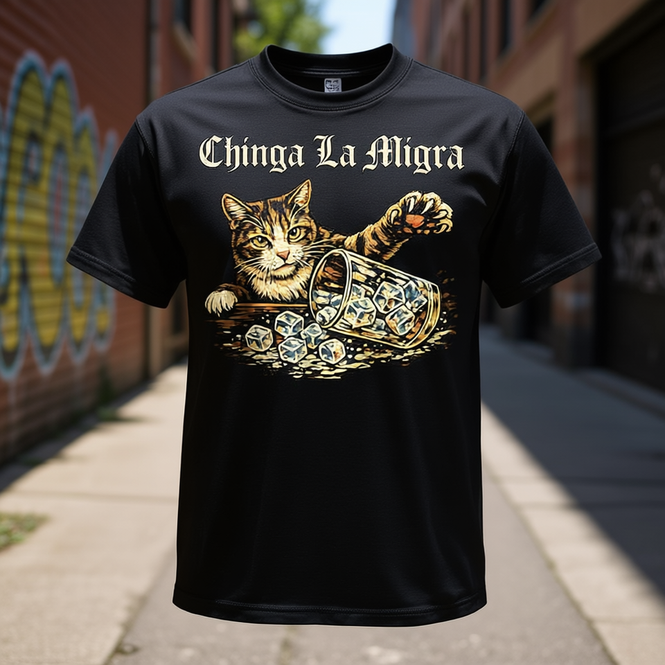 T-shirt Chinga La Migra Cat girocollo a maniche corte vintage unisex per adulti, abbigliamento promozionale