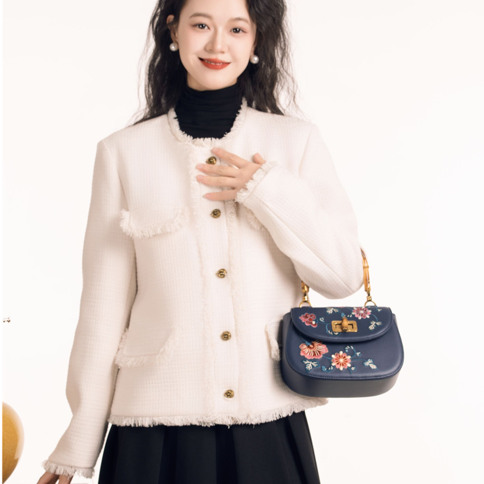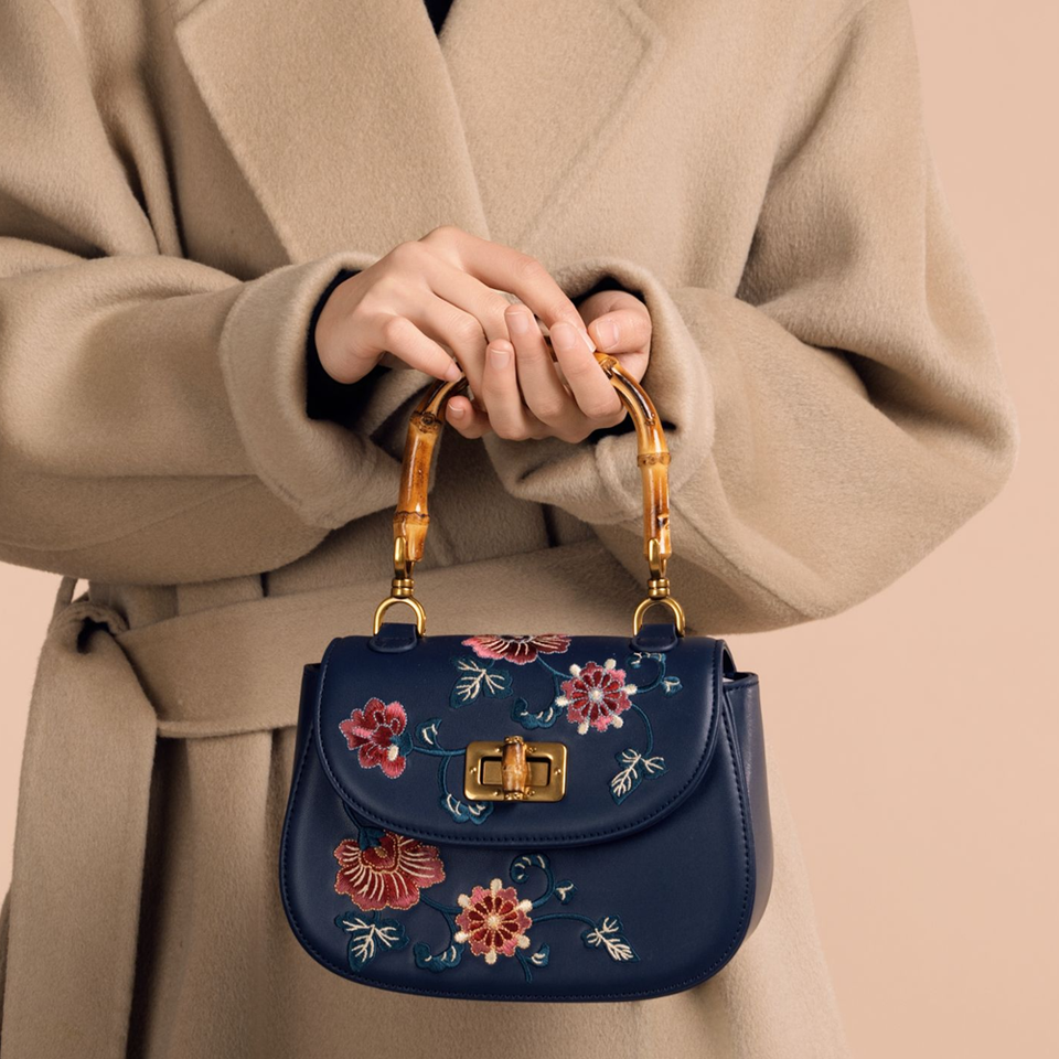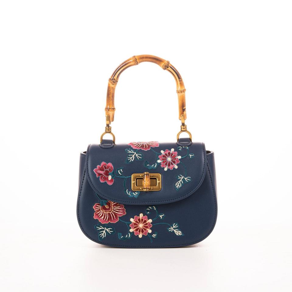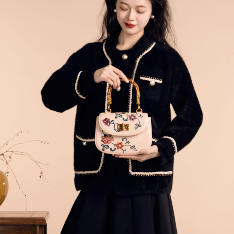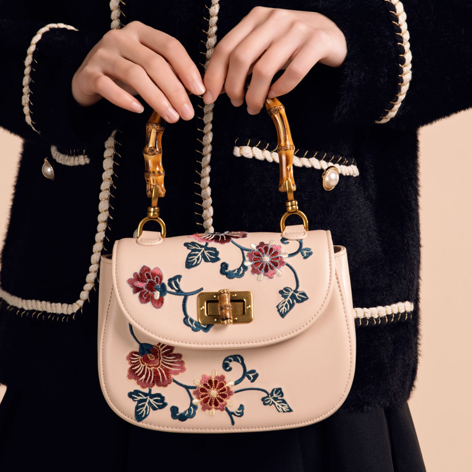 Borsetta Chinoiserie Suzhou con Ricamo Camelia e Bambù, Fodera in Tela Tinta Unita, Poliestere, Regalo di Compleanno Perfetto