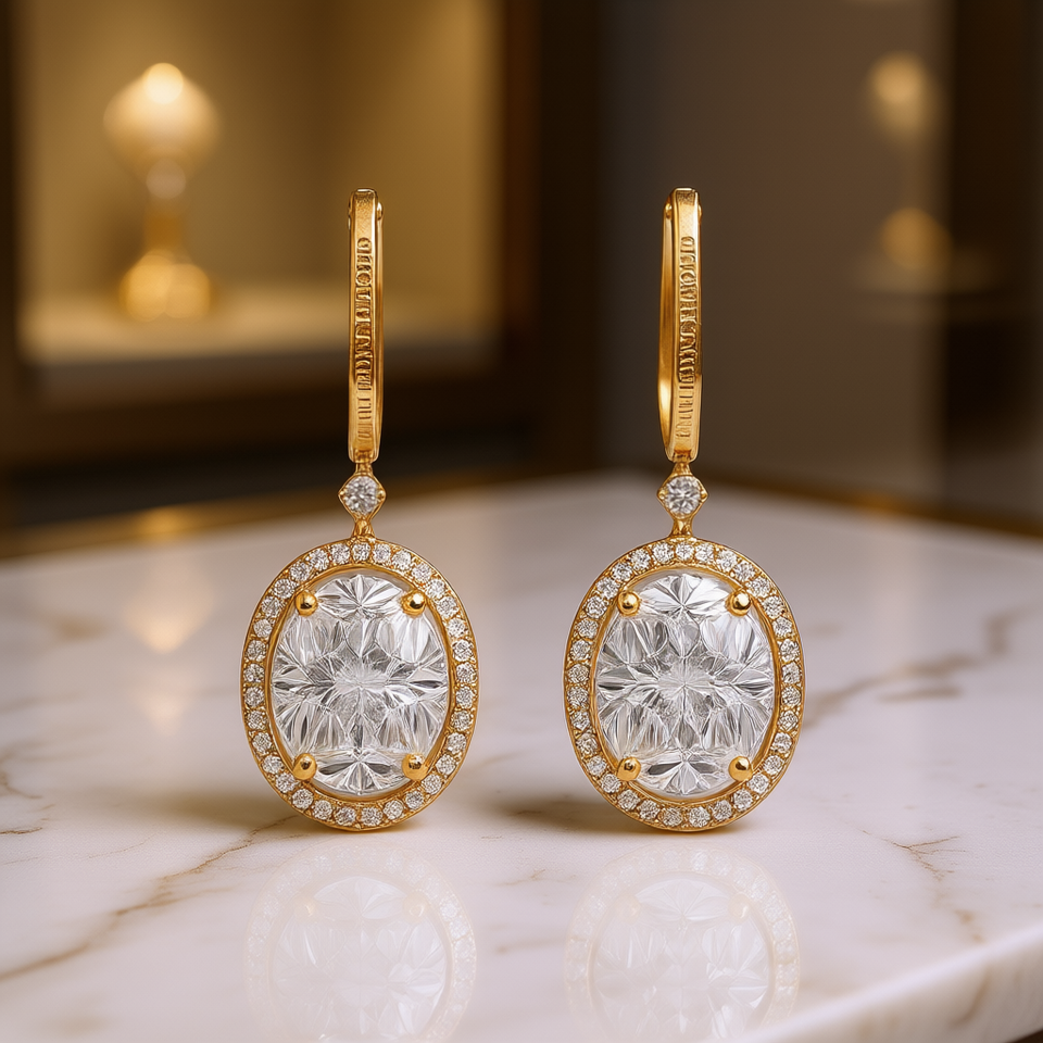 Orecchini Chopard con Diamanti Taglio Ovale in Oro Massiccio 18K, Colore D, Certificati GIA, Stile Classico da Donna per Matrimonio