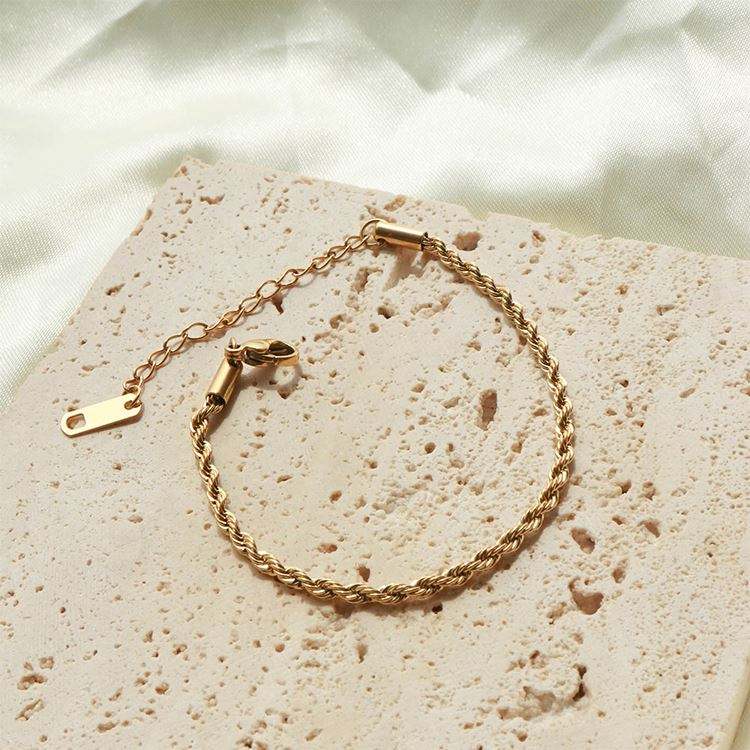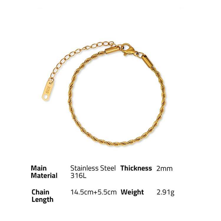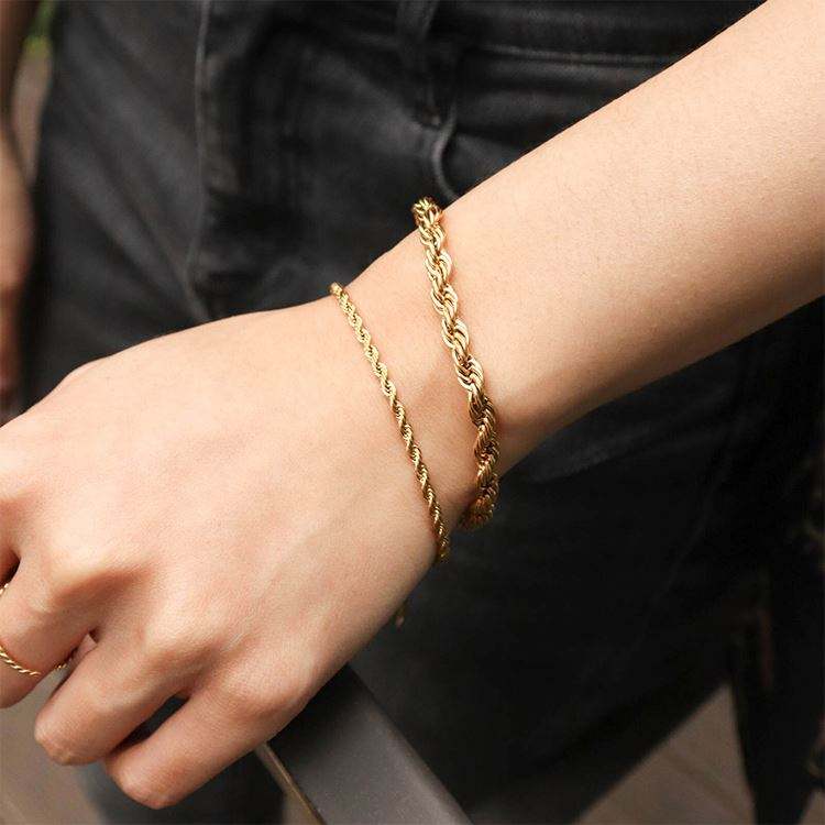 Bracciale Chris April personalizzato in acciaio inossidabile 316L placcato oro PVD, catena a corda intrecciata regolabile, per uomo e donna, gioielli.