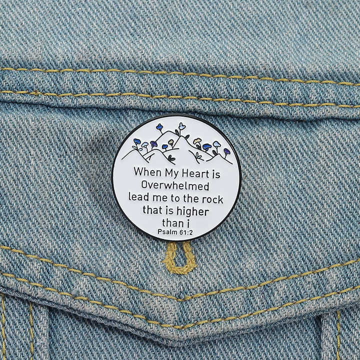 Christian Bible Verse Enamel Pin Lead Me to the Rock Brooch Faith Badge Jewelry Accessories Gift for Friends Wholesale