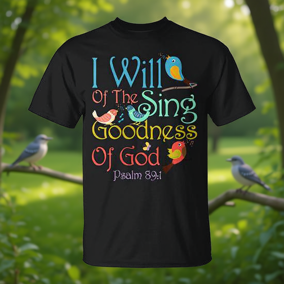 T-shirt Christian Bird: Canto la misericordia di Dio, Salmo 89:1, design nero