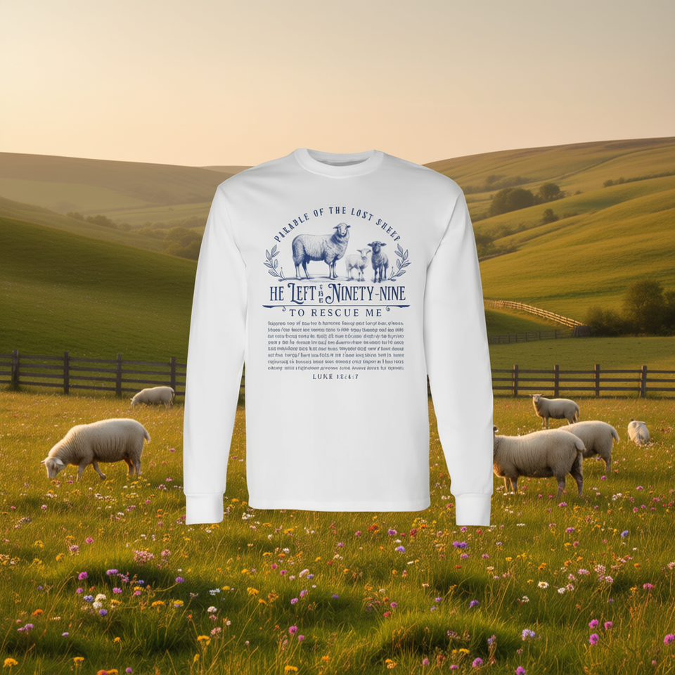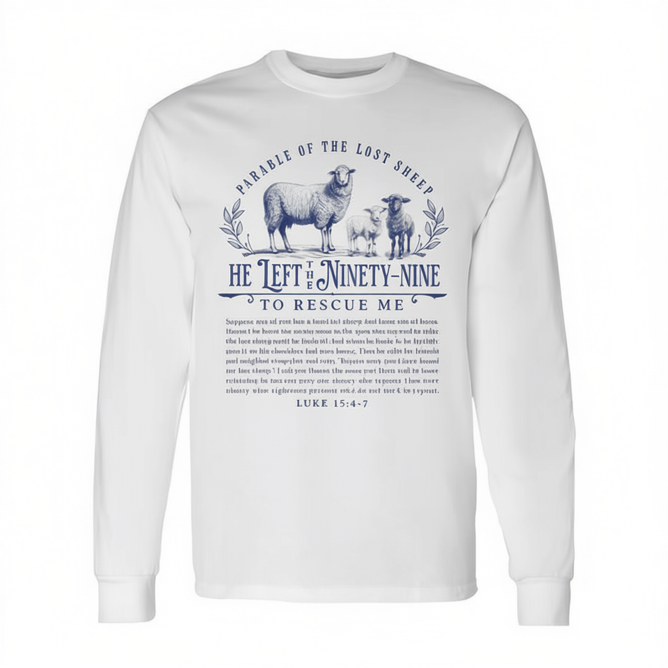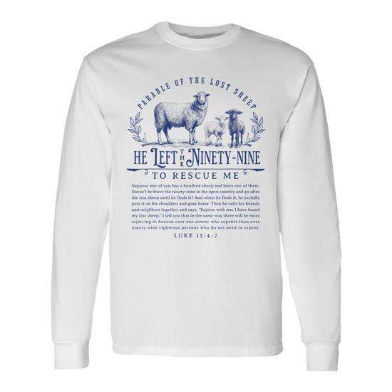 Maglietta a maniche lunghe Christian Cottagecore con la parabola della pecora smarrita di Lutero 15, promozione della comunità dalla Bibbia