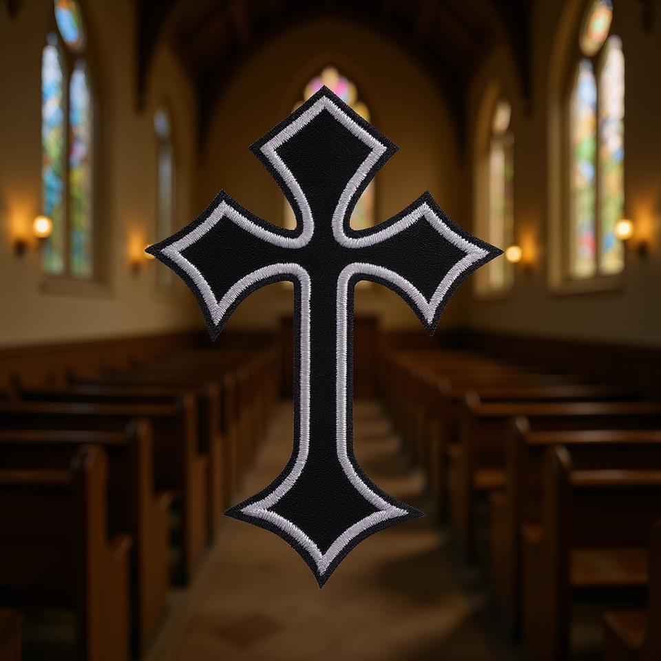 Toppa in feltro ricamata a croce cristiana termoadesiva per accessori di abbigliamento