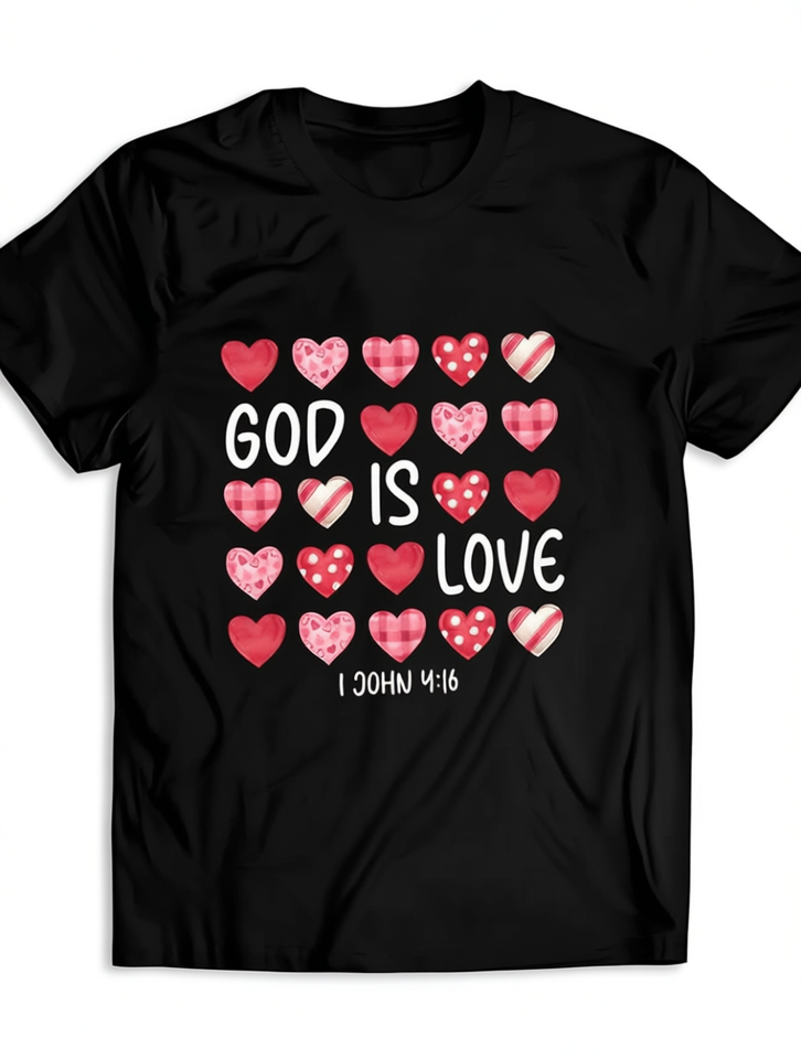 T-shirt da donna taglie forti con motivo a cuore 1 Juan 4:8, girocollo, manica corta, casual, per la chiesa, con stampa 'Christian Faith'