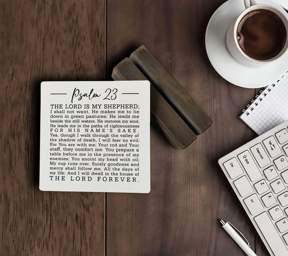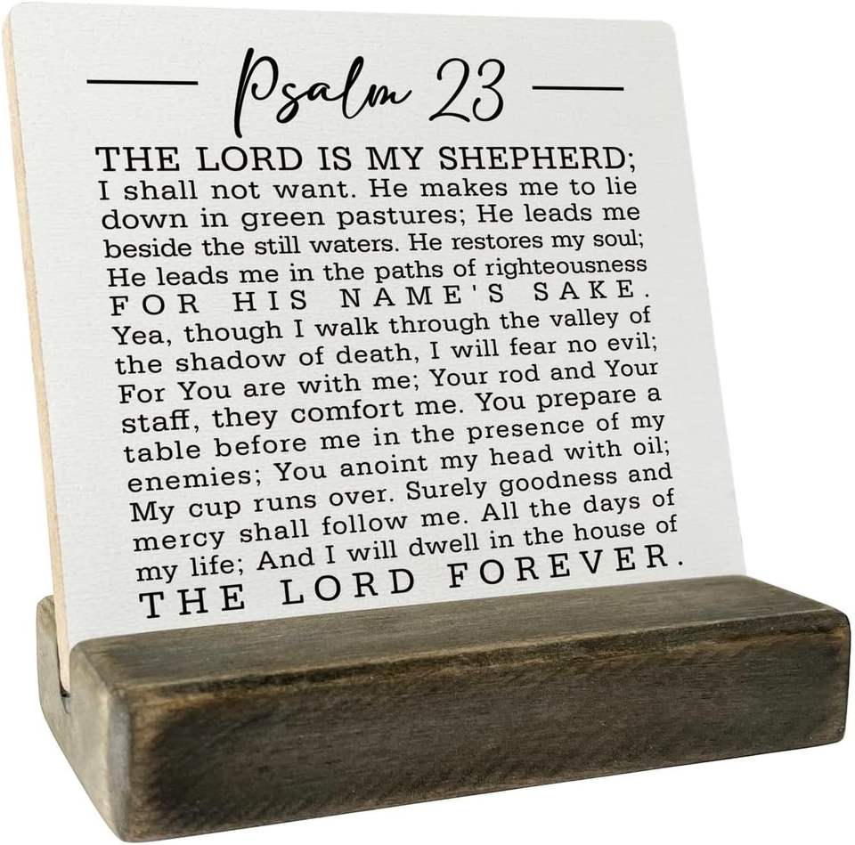 Christian Quote Wood Plaque Gift Psalm 23- the Lord Is My Shepherd Sign Plaque with Wooden Stand
