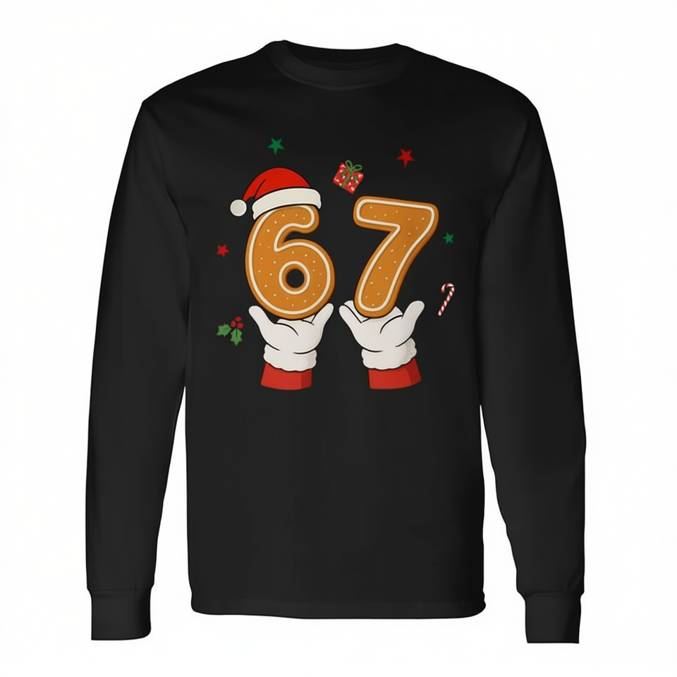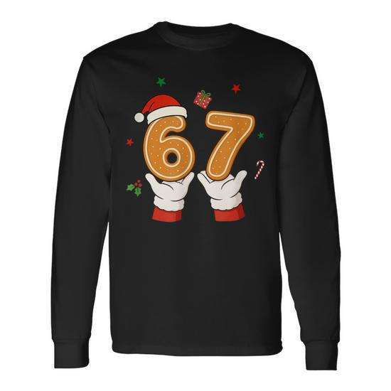 Maglietta natalizia a maniche lunghe 67, regalo per le vacanze, design con meme Gen Z