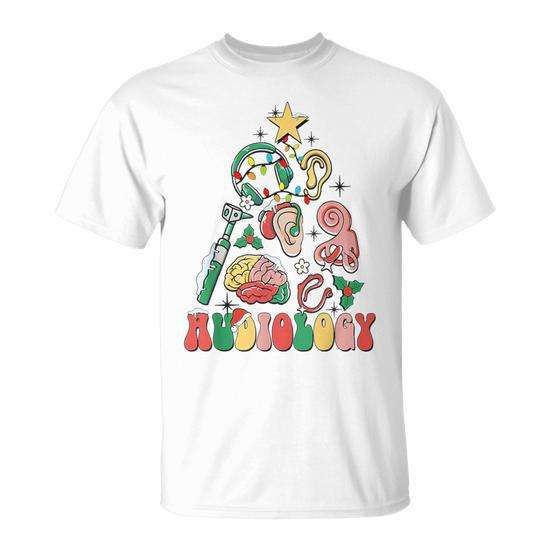 Maglietta natalizia Audiology Tree per studenti e laureati