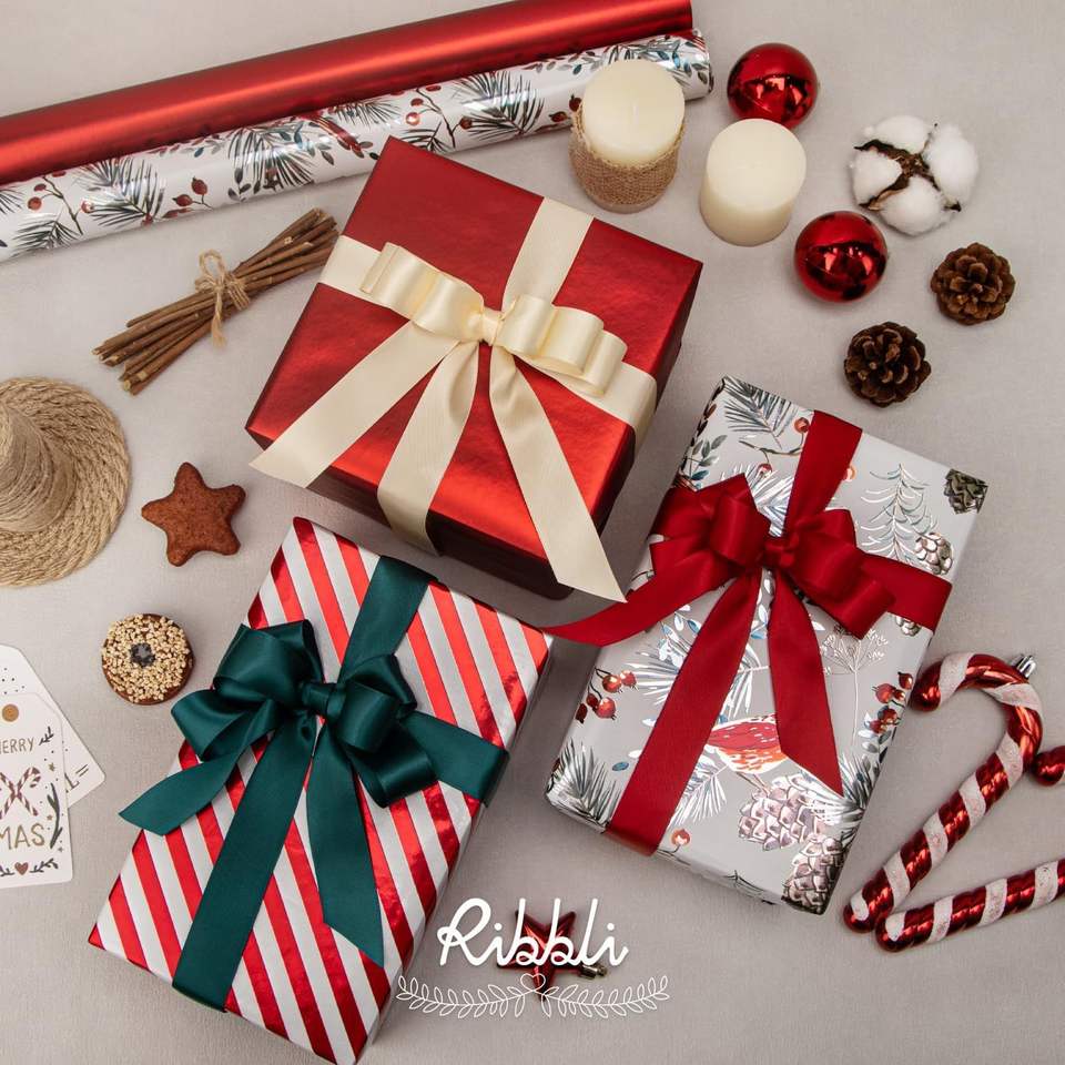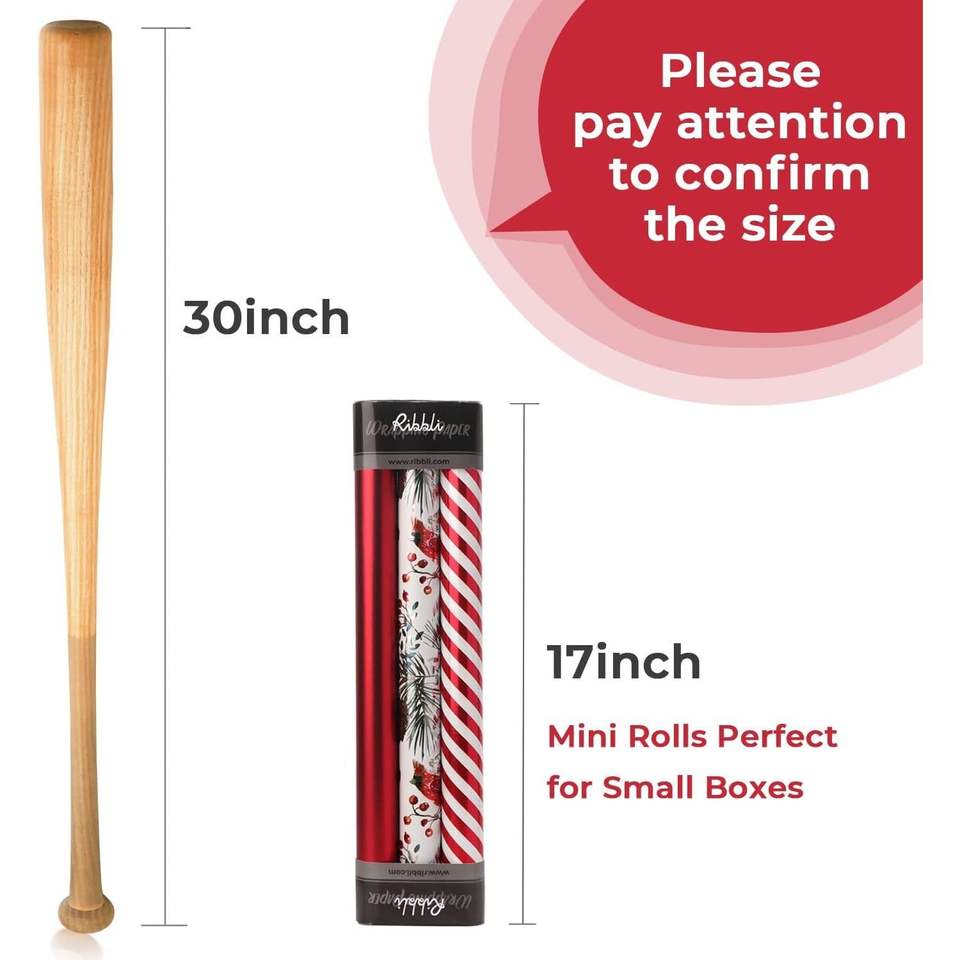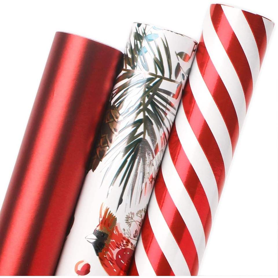 Assortimento di Carta da Regalo Vintage con Stampa Bastoncini di Zucchero Natalizi, 3 Rotoli Rossi e Bianchi, Formato Mini 17 I