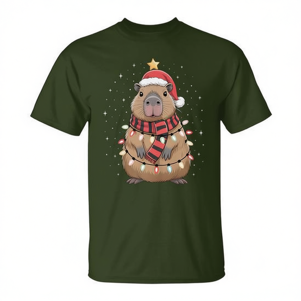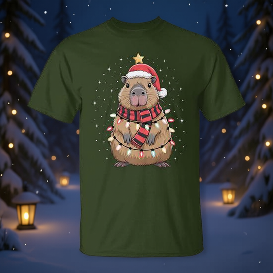 Maglietta natalizia con cappello da Babbo Natale e luci di Natale