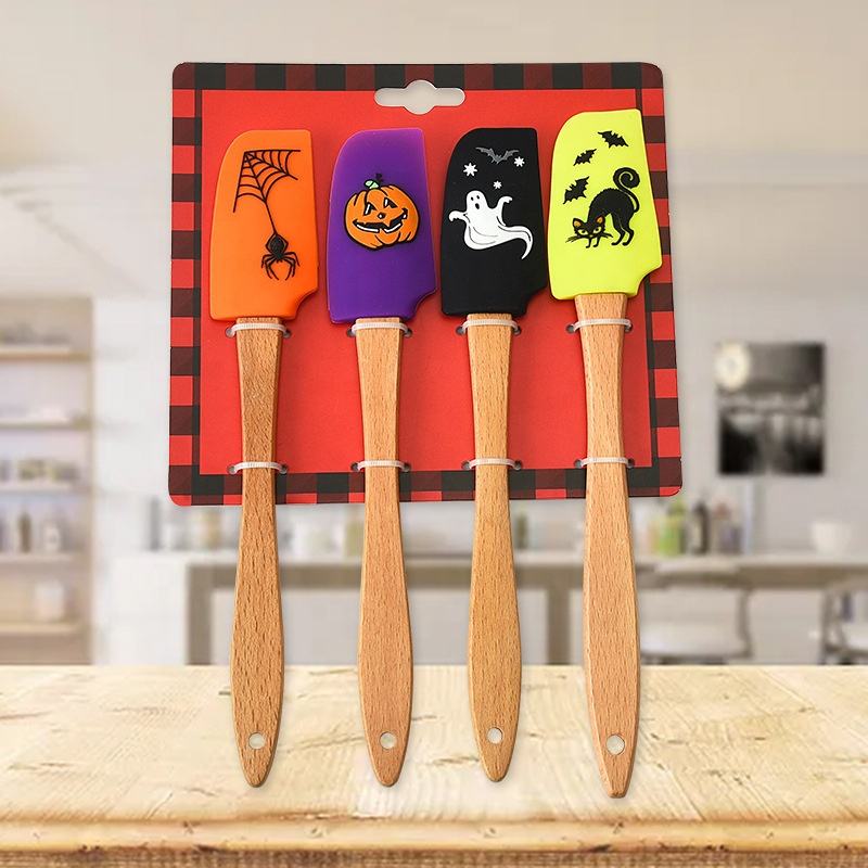 Natale cartone animato Non bastone resistente al calore 4 pezzi in Silicone raschietto Set Mini manica di cottura per l'utilizzo di pasta per utensili da forno