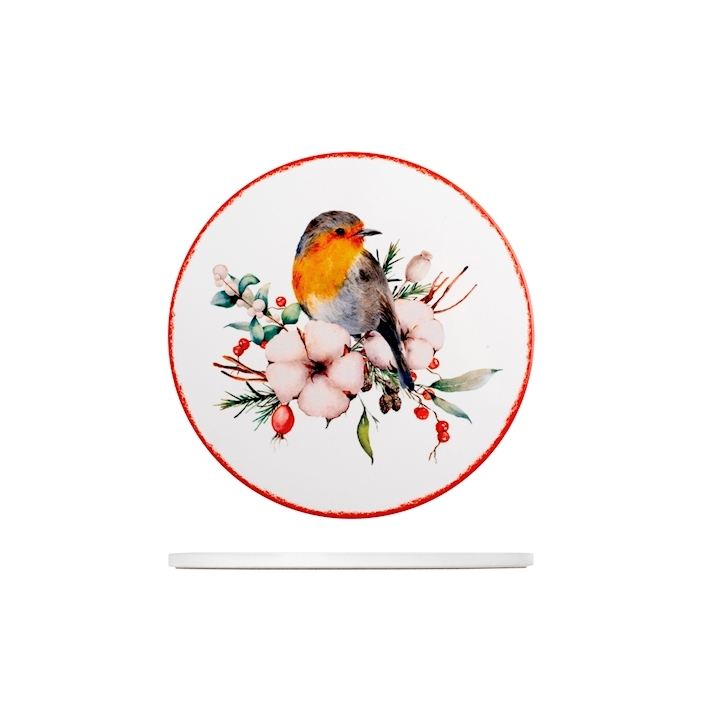 Sottopentola natalizio in ceramica con disegno di pettirosso, fiori e bacche per la protezione della tavola