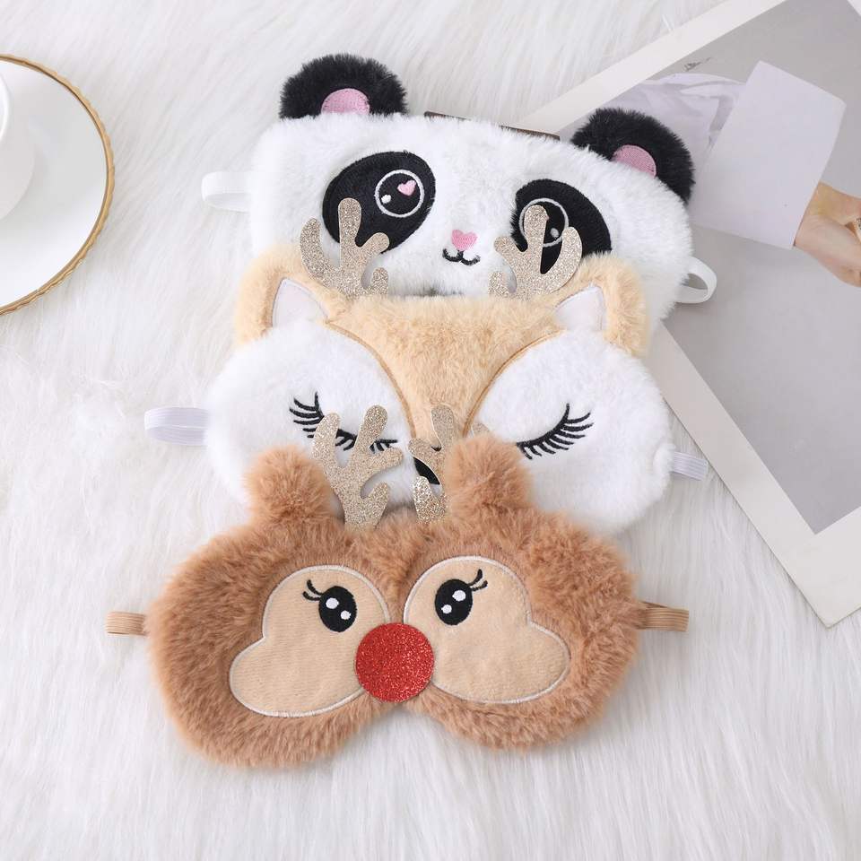 Mascherina per Occhi Natalizia con Coniglietto Ricamato, Mascherina per Dormire che Blocca la Luce