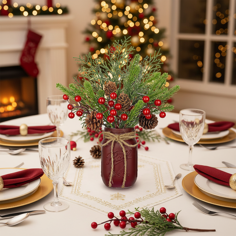 Decorazioni per Tavolo da Pranzo Natalizio con Fogliame Artificiale, Pigne e Bacche, Centrotavola per Matrimoni