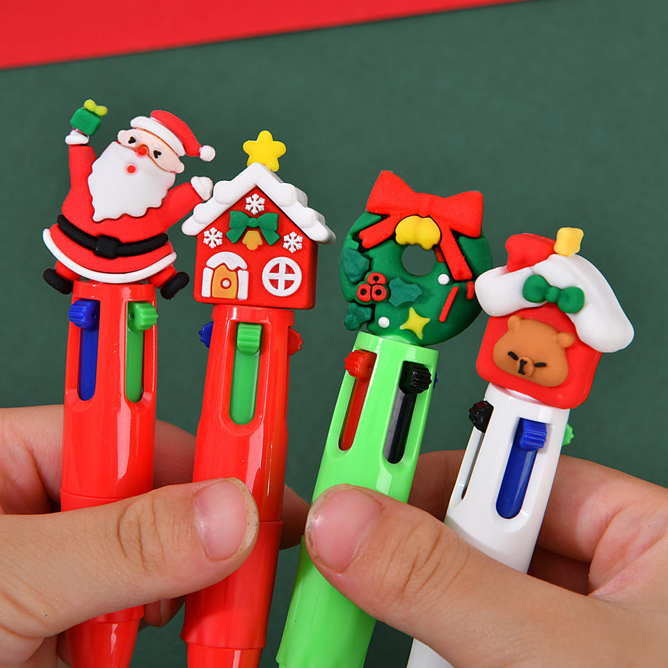 Penna a sfera di natale a quattro colori Design simpatico cartone animato adorabile Mini penna tascabile penna premio per studente di alto valore